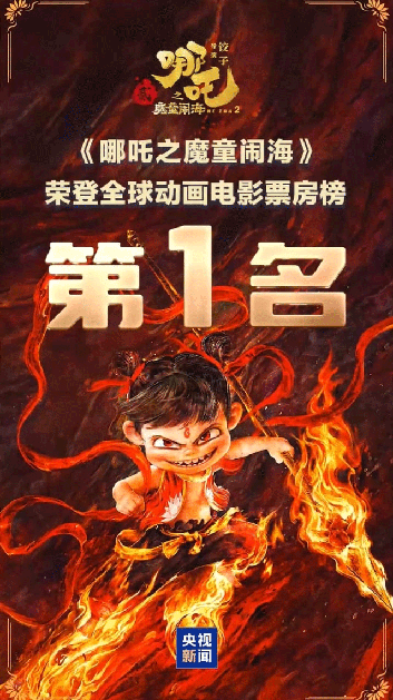 بیجنگ (نیوز ڈیسک) چینی اینیمیٹڈ فلم”نیژا 2″ کا عالمی باکس آفس 1698 ملین ڈالرز سے تجاوز کر گیا ۔یوں یہ فلم عالمی اینیمیٹڈ فلم باکس آفس فہرست میں پہلے نمبر پر آ گئی ہے اور عالمی سطح پر فلمی تاریخ کی باکس آفس فہرست میں سر فہرست 8فلموں میں شامل ہو گئی ہے.