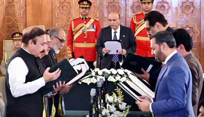 خالد مگسی کو سائنس و ٹیکنالوجی، معین وٹو کو آبی وسائل، محمد جنید انور کو میری ٹائم افیئرز، رضا حیات کو وزارت دفاعی پیداوار اور شزہ فاطمہ خواجہ کو انفارمیشن ٹیکنالوجی اینڈ ٹیلی کمیونیکیشن کی وزارت دی گئی ہے۔