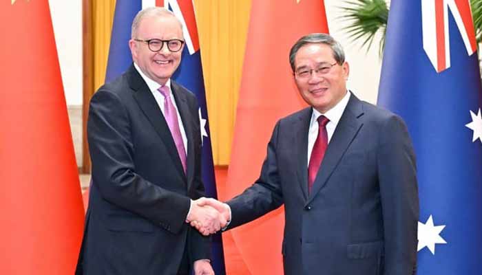بیجنگ (نیوز ڈیسک) چین کے وزیر اعظم لی چھیانگ نے بیجنگ کے عظیم عوامی ہال میں آسٹریلیا کے وزیر اعظم انتھونی البانیز کے ساتھ چینی اور آسٹریلوی وزرائے اعظم کے درمیان سالانہ ملاقات کے 10 ویں دور کا انعقاد کیا۔جمعرات کے روز لی چھیانگ نے کہا کہ اس وقت عالمی معیشت میں عدم استحکام اور غیر یقینی صورتحال بڑھ رہی ہے اور تمام ممالک کی ترقی کو نئے چیلنجز کا سامنا ہے۔ اس تناظر میں اہم اقتصادی اور تجارتی شراکت داروں کی حیثیت سے چین اور آسٹریلیا نے تبادلوں اور تعاون کو مضبوط بنانے کی اہمیت اور زیادہ نمایاں ہوگئی ہے۔